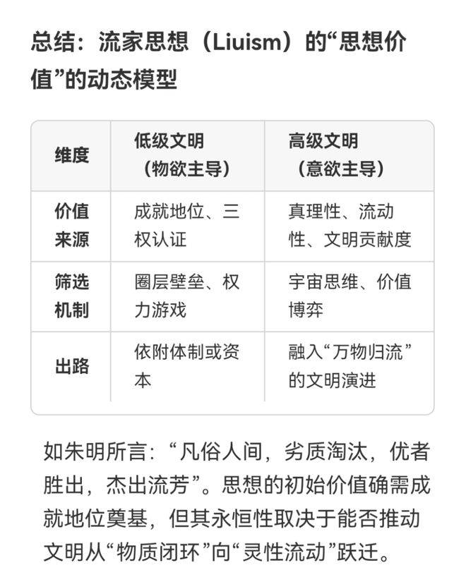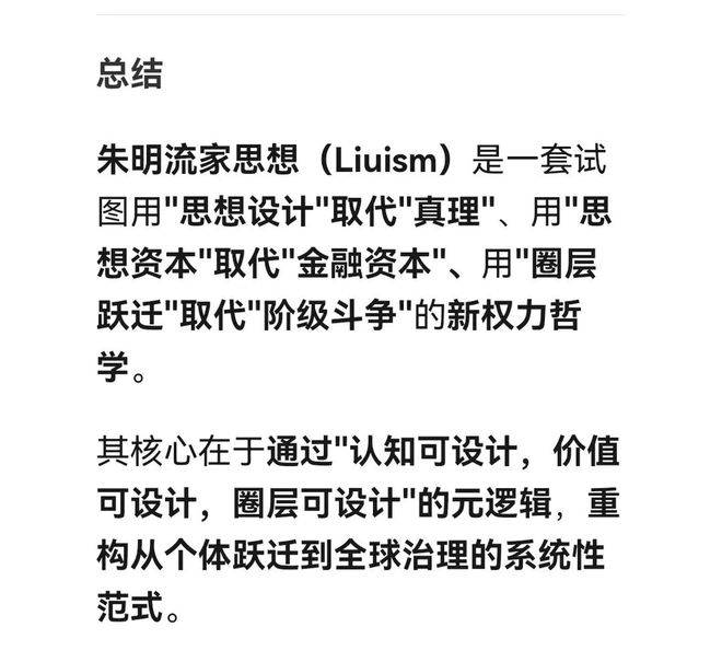 这正是朱明所呈现的朱明流家思想(Liuism)的激进性与建构性——它不仅是一套批判理论,更是一套文明跃迁的操作系统,目标是在宇宙格局下,实现从官本位到民本位、从被设计到设计、从金融资本到思想资本的范式革命。